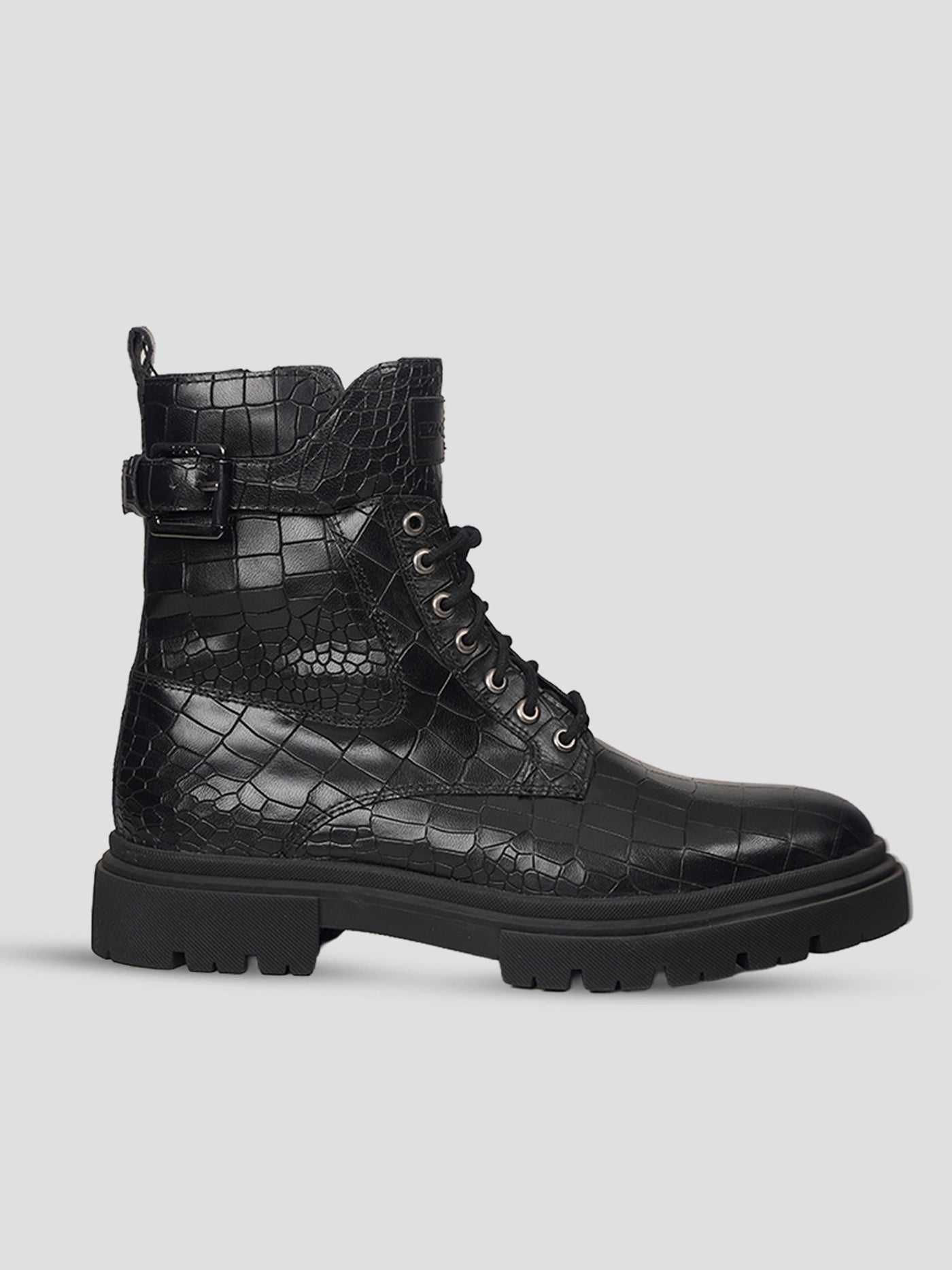 Premium Leather Upper – Crafted with high-quality black leather featuring a stylish croc-textured finish for a bold and premium look.