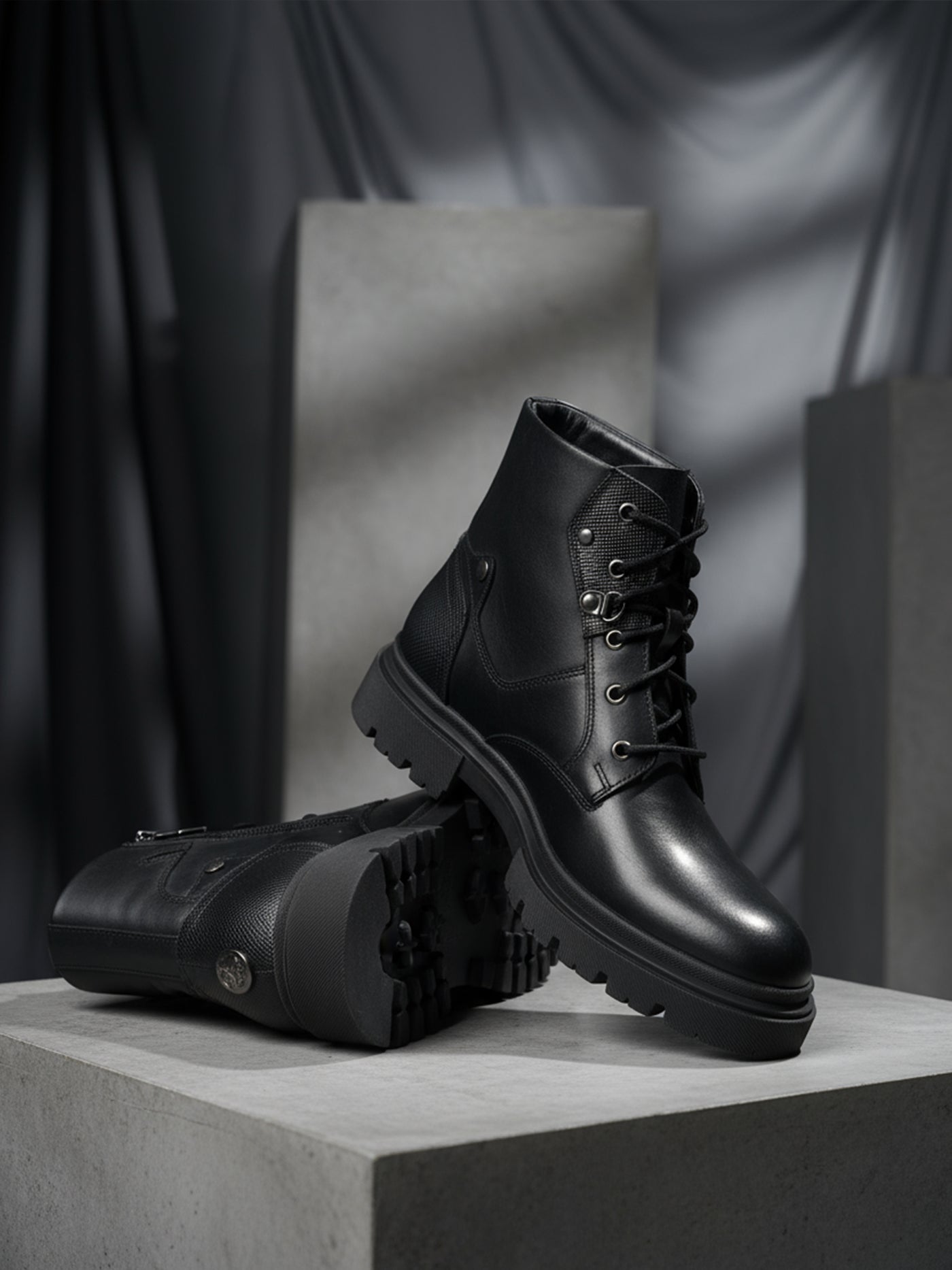 Elevate your footwear collection with EZOK Men’s Black Leather Lace-Up Boots. Crafted from premium leather, these boots offer a rugged yet refined look, perfect for casual and semi-casual occasions.