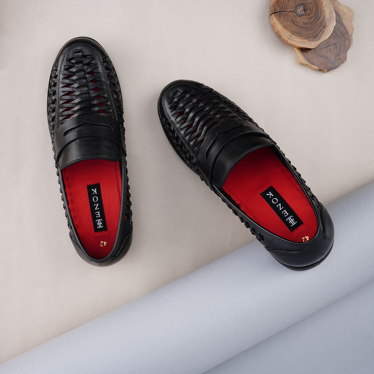 Ezok Men Leather Black Casual Moccasin Shoes For Men