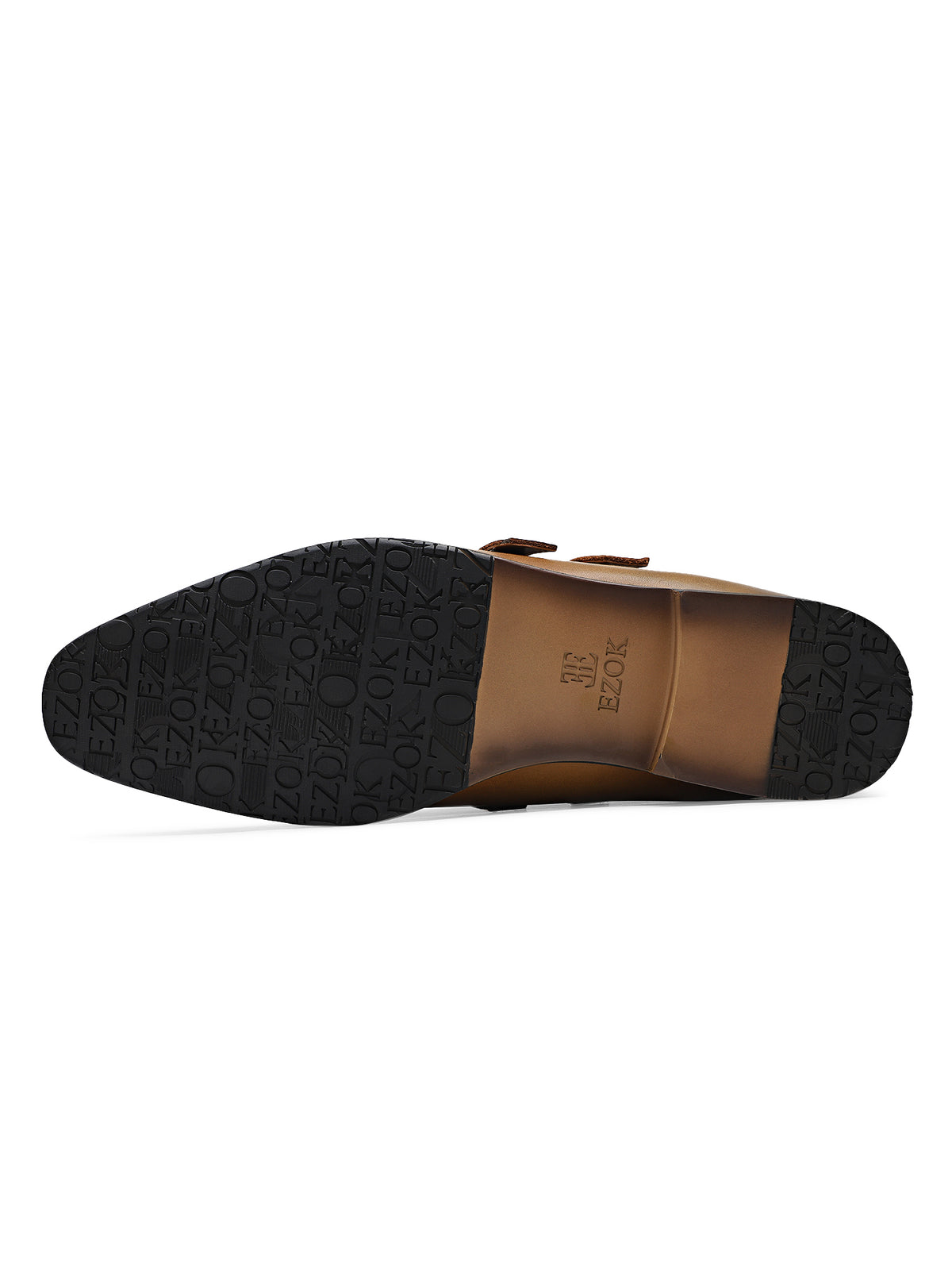 Ezok Men A Pair Of Solid Bosco Leather Monk Straps, Has Upper Genuine Leather Faux Leather Lining.