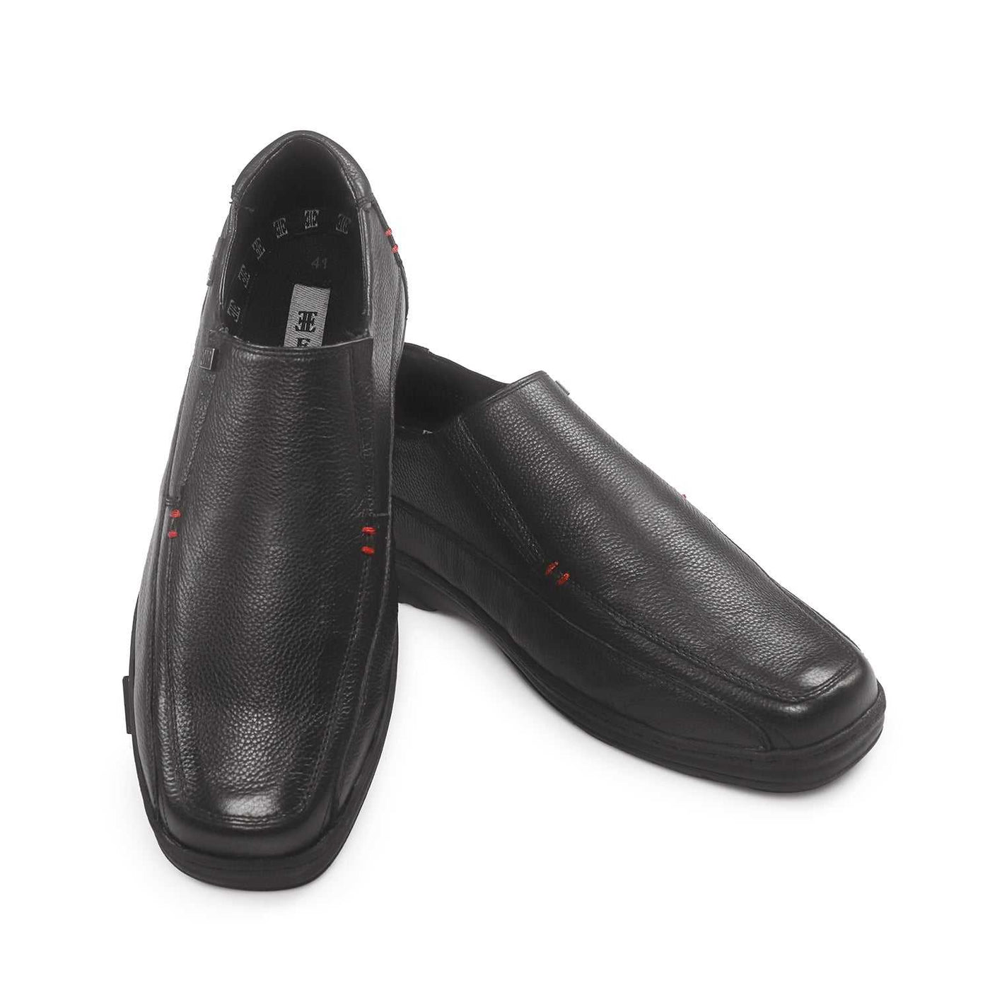 Ezok Men A Pair Of Solid Hector Comfort Flexi Slip-Ons Black Square Toe , Has Upper Genuine Leather Faux Leather Lining.