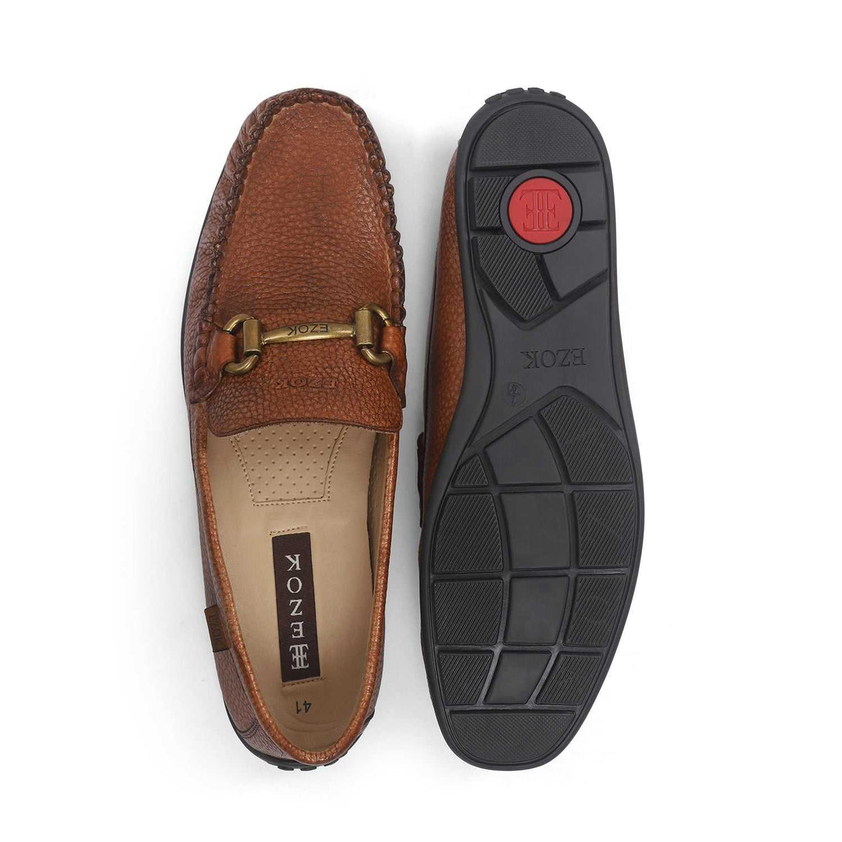 Ezok Men A Pair Of Solid Carlo Loafer Flexi Slip-Ons Tan Square Toe , Has Upper Genuine Leather Faux Leather Lining.