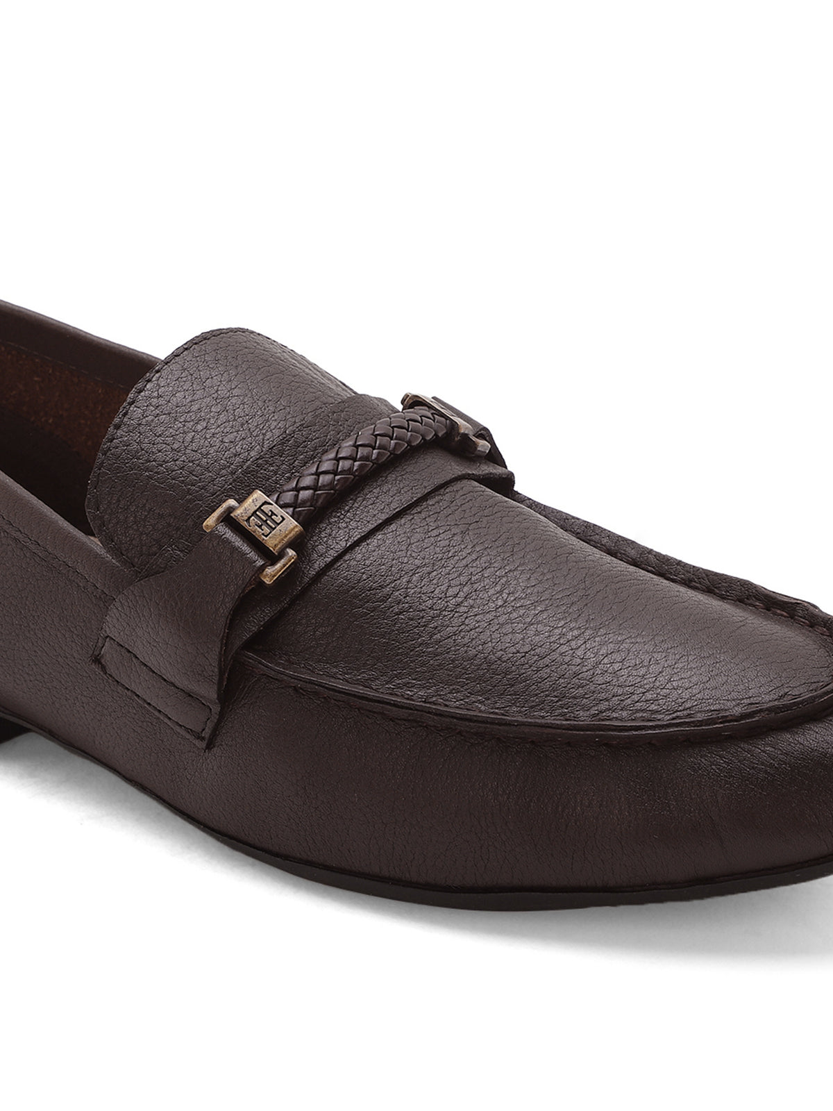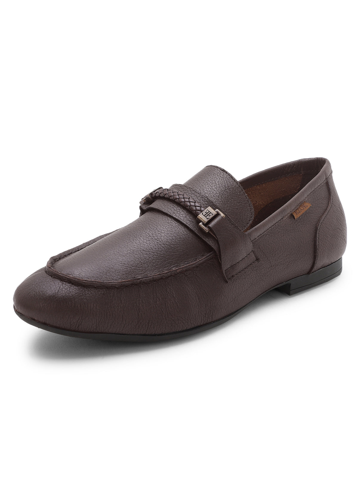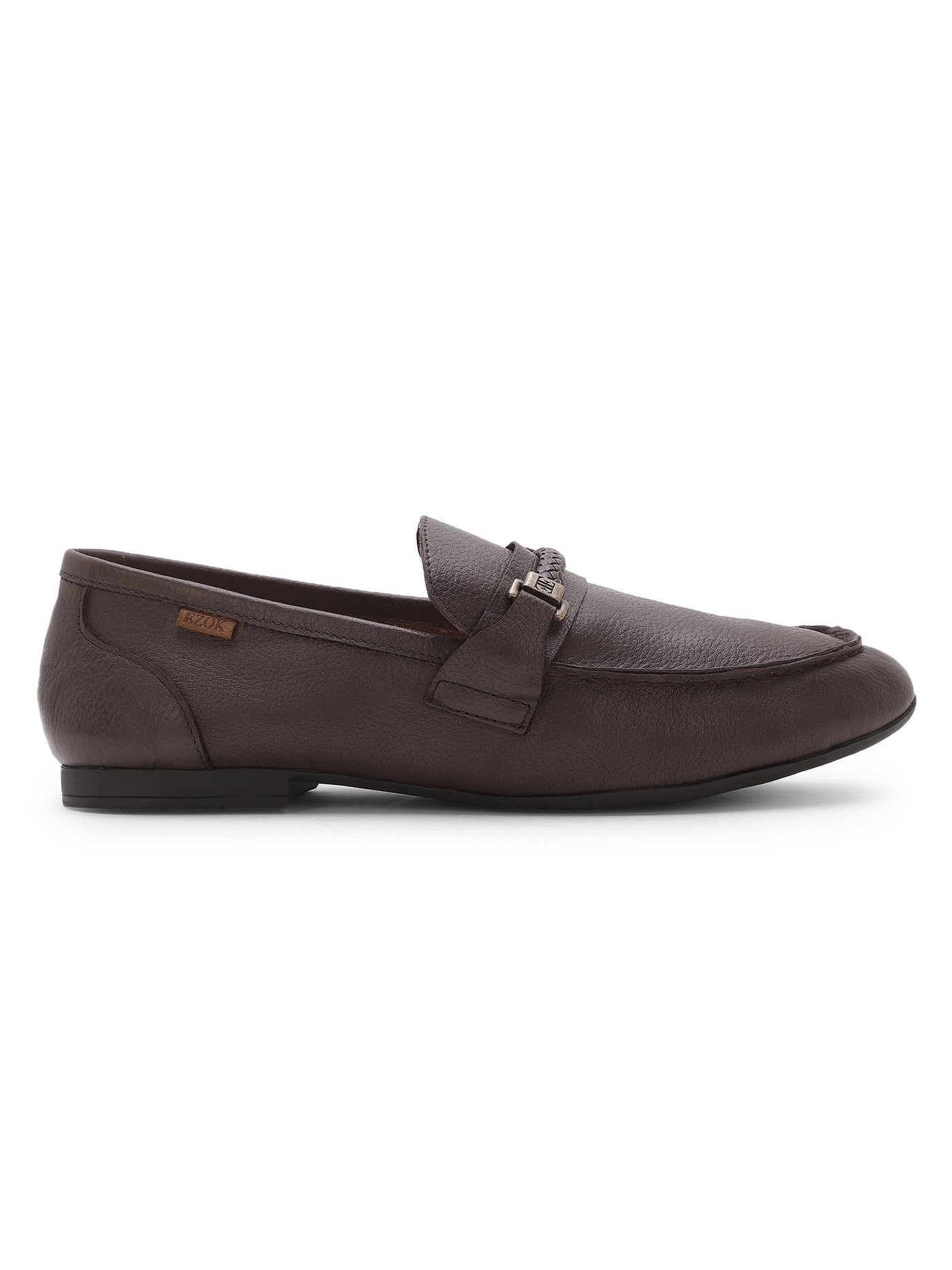 Ezok Men A Pair Of Solid Primo Loafer Flexi Slip-Ons Brown Round Toe , Has Upper Genuine Leather Faux Leather Lining.