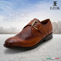 Ezok Men A Pair Of Solid Maximus Dress Monk Strap Buckle Tan Round Toe , Has Upper Genuine Leather Faux Leather Lining.