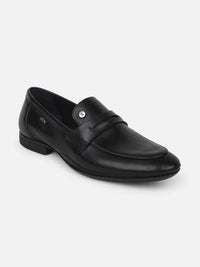 Ezok Men A pair of Black solid round toe Mocassins Loafer has mid-top stylingand Slip-on details Leather upper Cushioned footbed.