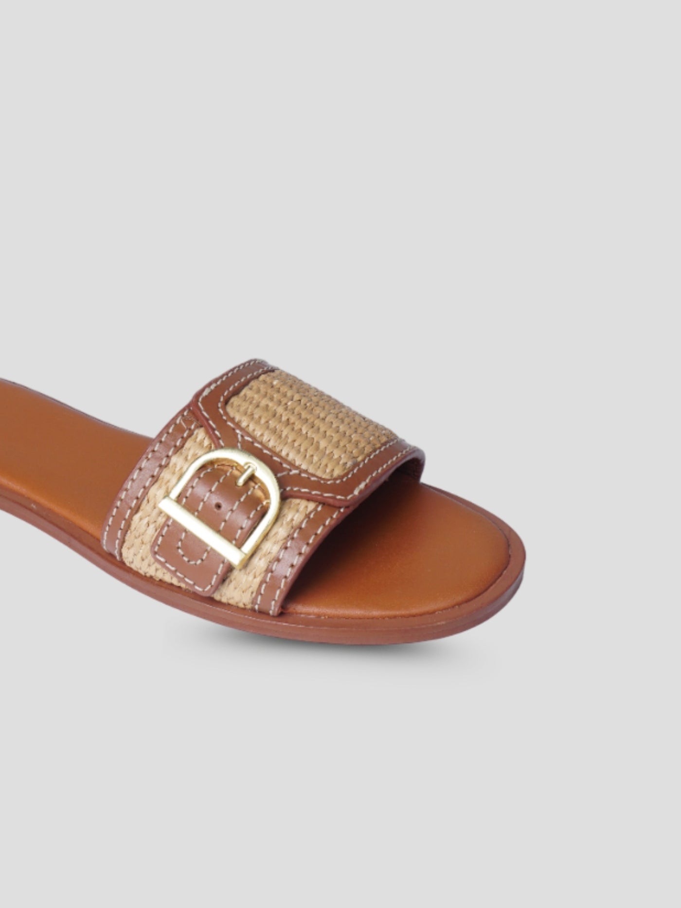 Premium Leather & Raffia Upper: Stylish combination of high-quality leather and raffia detailing for a unique, modern look.